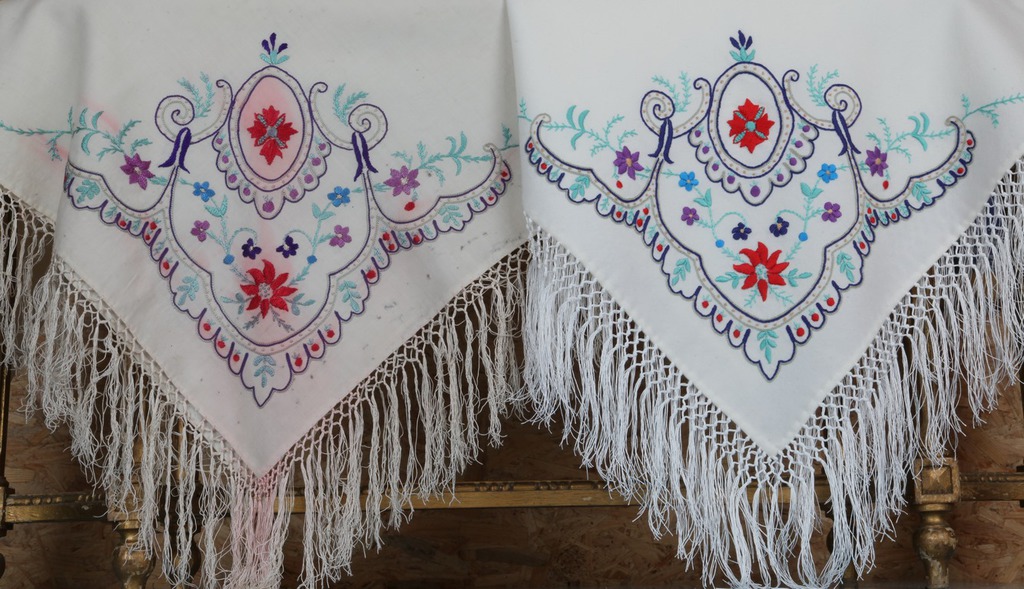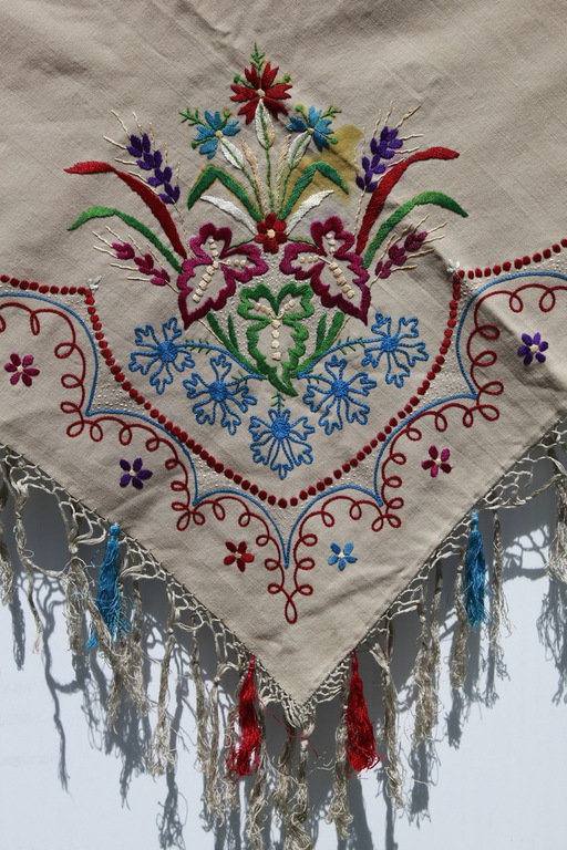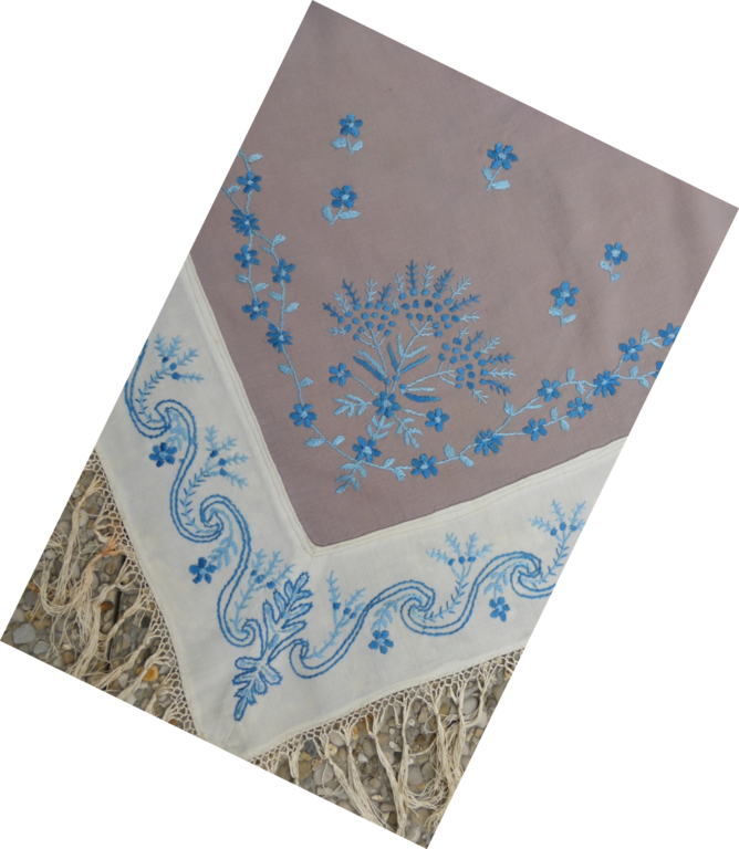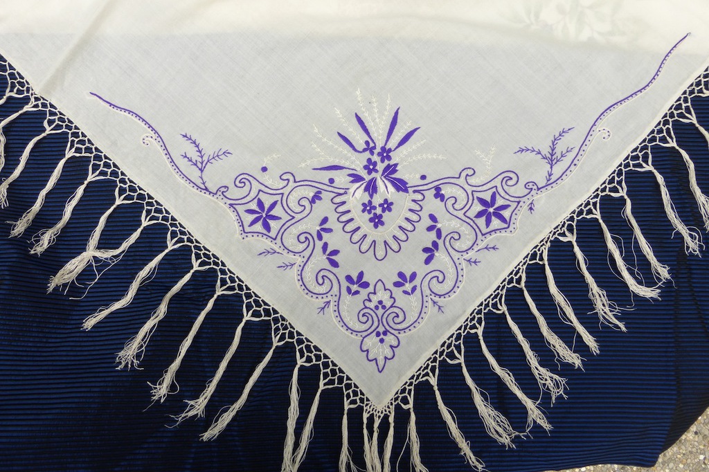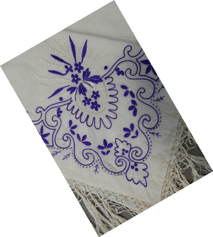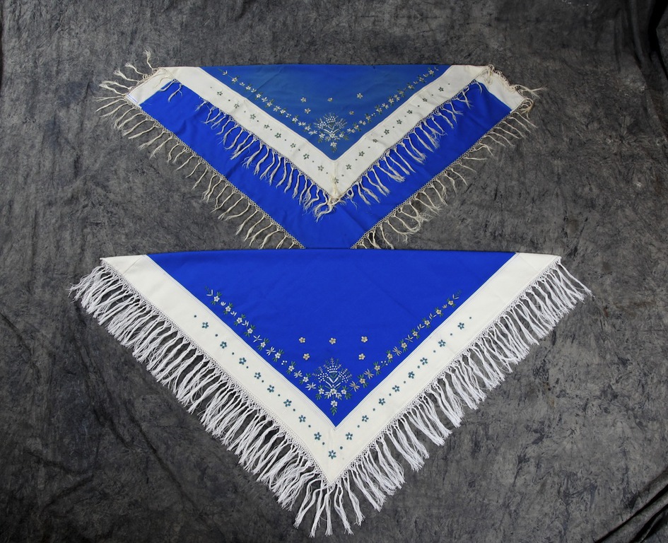 Pour les mariages et les grandes fêtes, il était blanc, brodé de motifs de fleurs ton sur ton. On le dispose en recouvrant les épaules et la poitrine, les deux pointes de devant sont enfilées sous le tablier, celle du dos descend jusqu'a la taille.