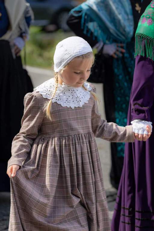 Au début du groupe, les filles portaient les coiffes des grand-mères. En 1975, le premier métier à tuyauter a permis de confectionner de nouvelle béguines.